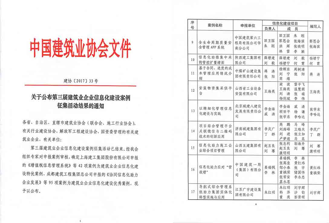 集团荣获第三届“修建业企业信息化建设特优案例”