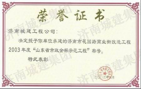 济南市花园路商业街刷新工程荣获2003年度山东省市政金杯树模工程